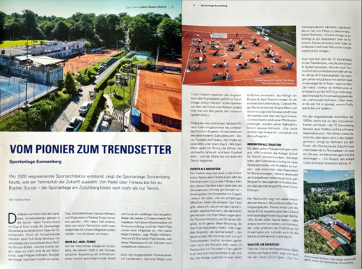 Die renommierte Zeitschrift Zürich Tennis berichtet in ihrer aktuellen Ausgabe Okt. 2025 bis Apr. 2026 über